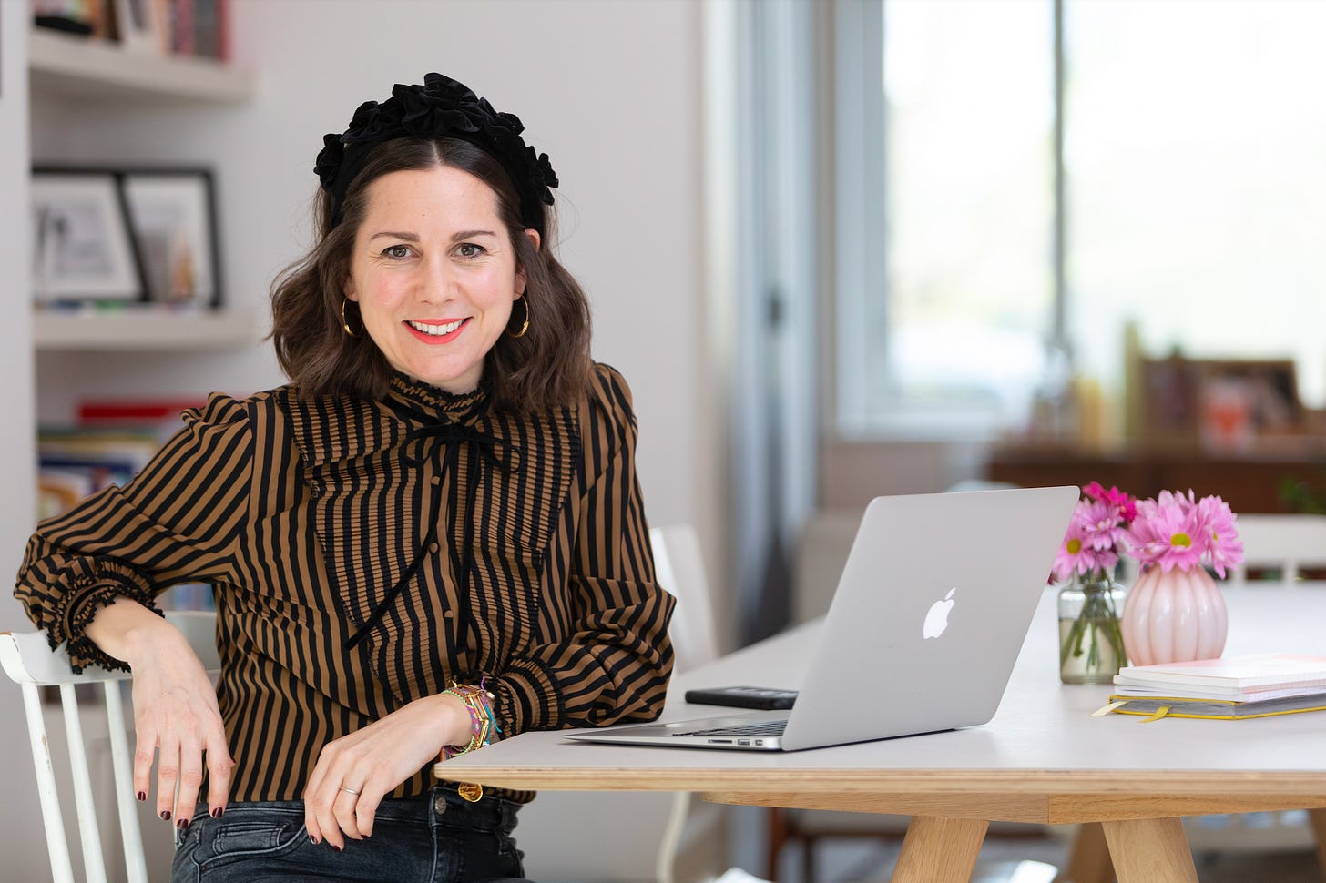 Well this is me, above, at my dining table, at home in North West London. I don’t actually work from here (too noisy); usually you’ll find me upstairs in my office, a small corner of our home that is held up by books and Post-It notes.